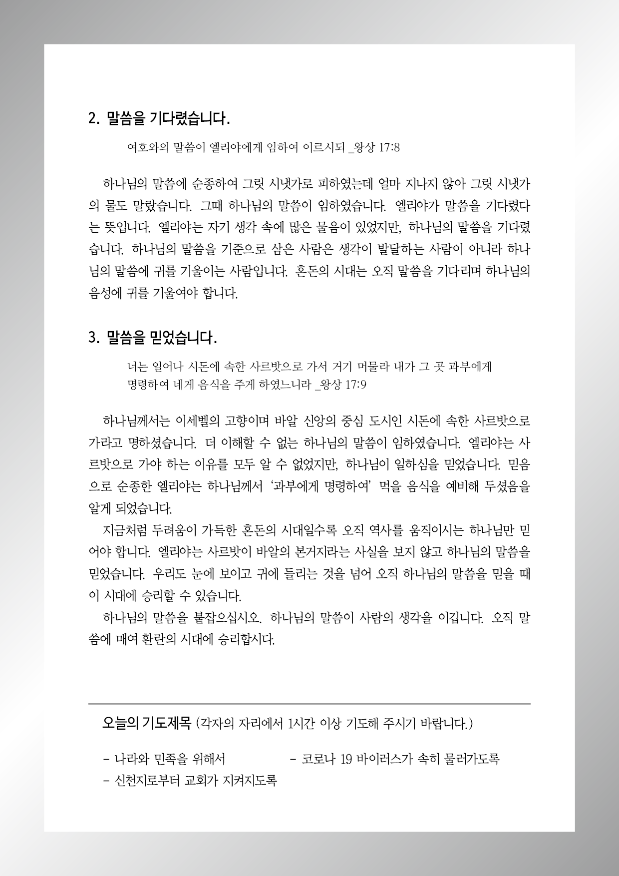 열왕기상 17장 5-9절