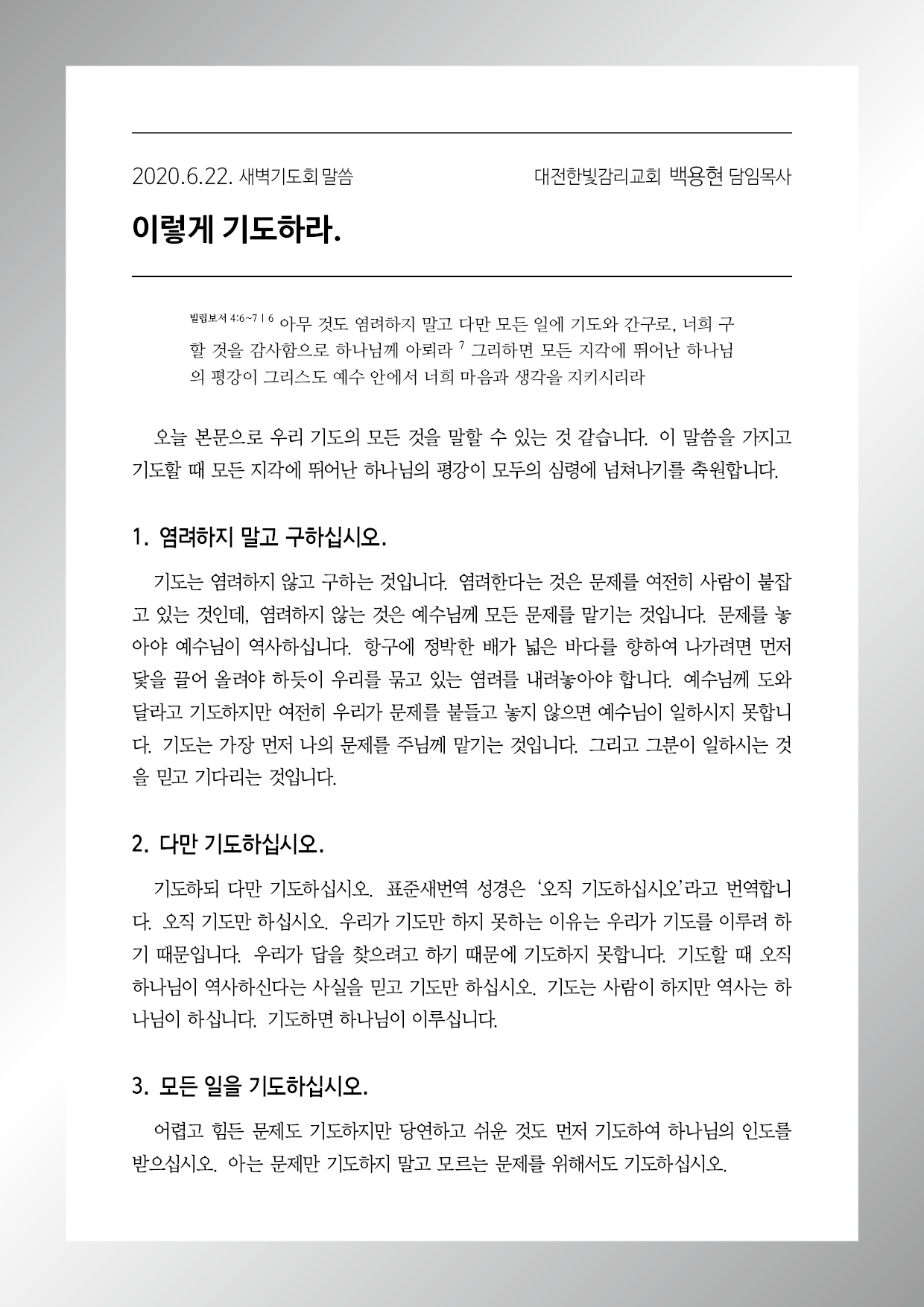 한글파일 다운로드 ➡︎ 200622_이렇게 기도하라.hwp