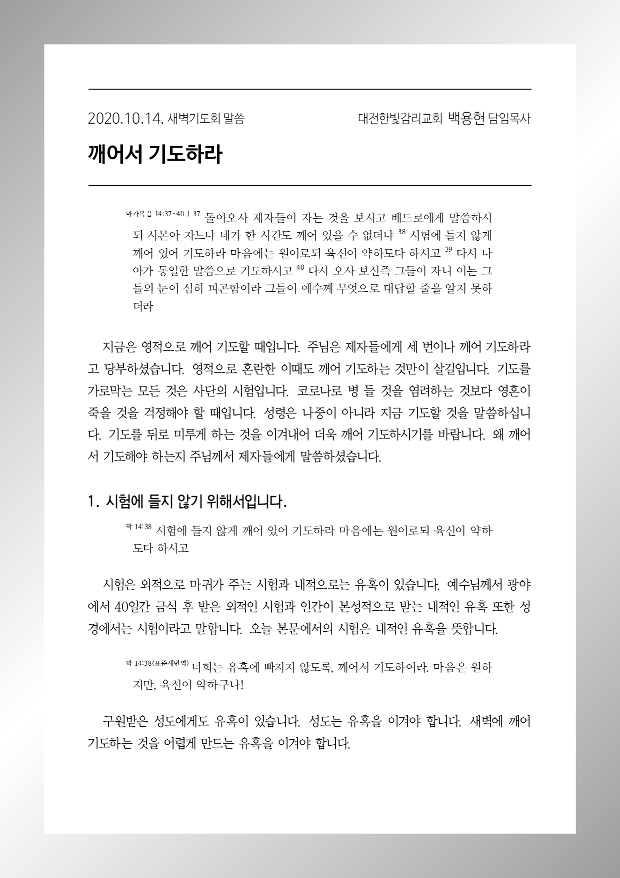 "깨어서 기도하라"