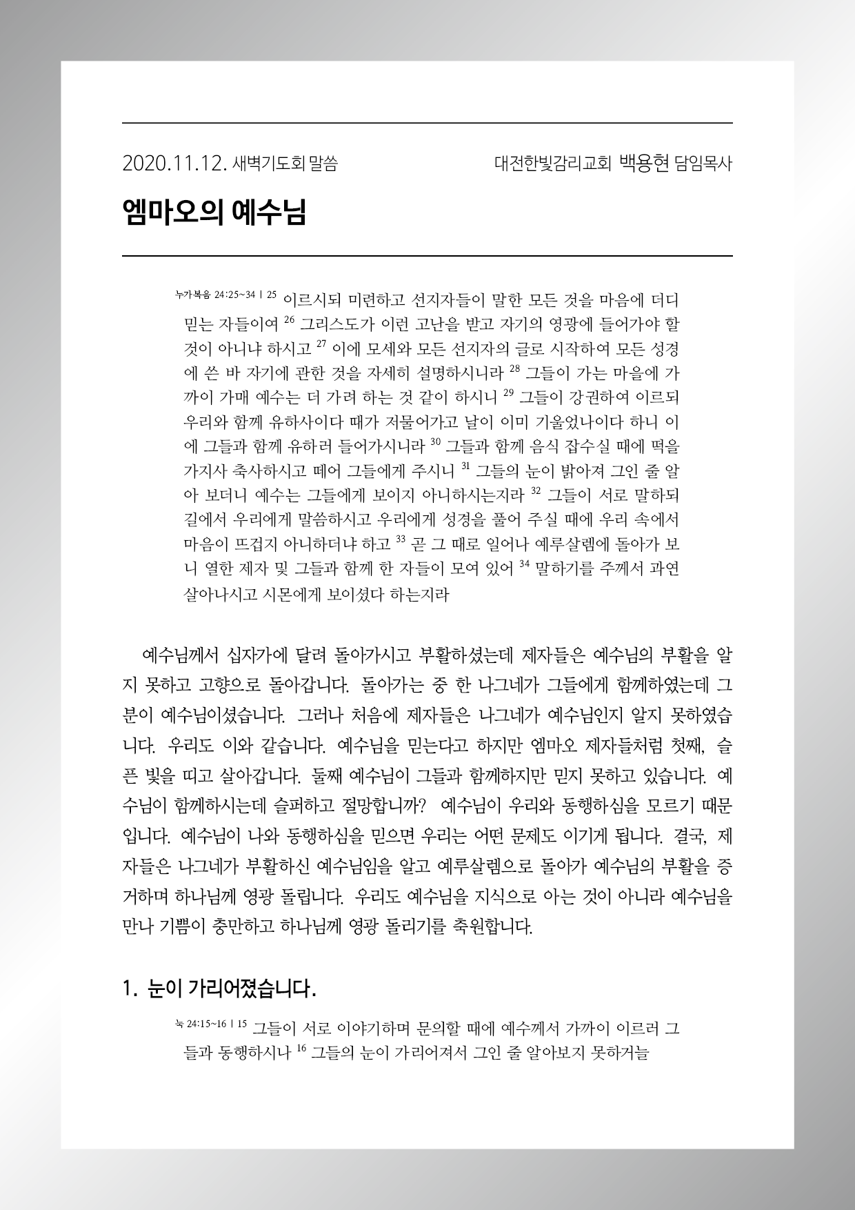 한글파일 다운로드 ➡︎ 201112_엠마오의 예수님.hwp
