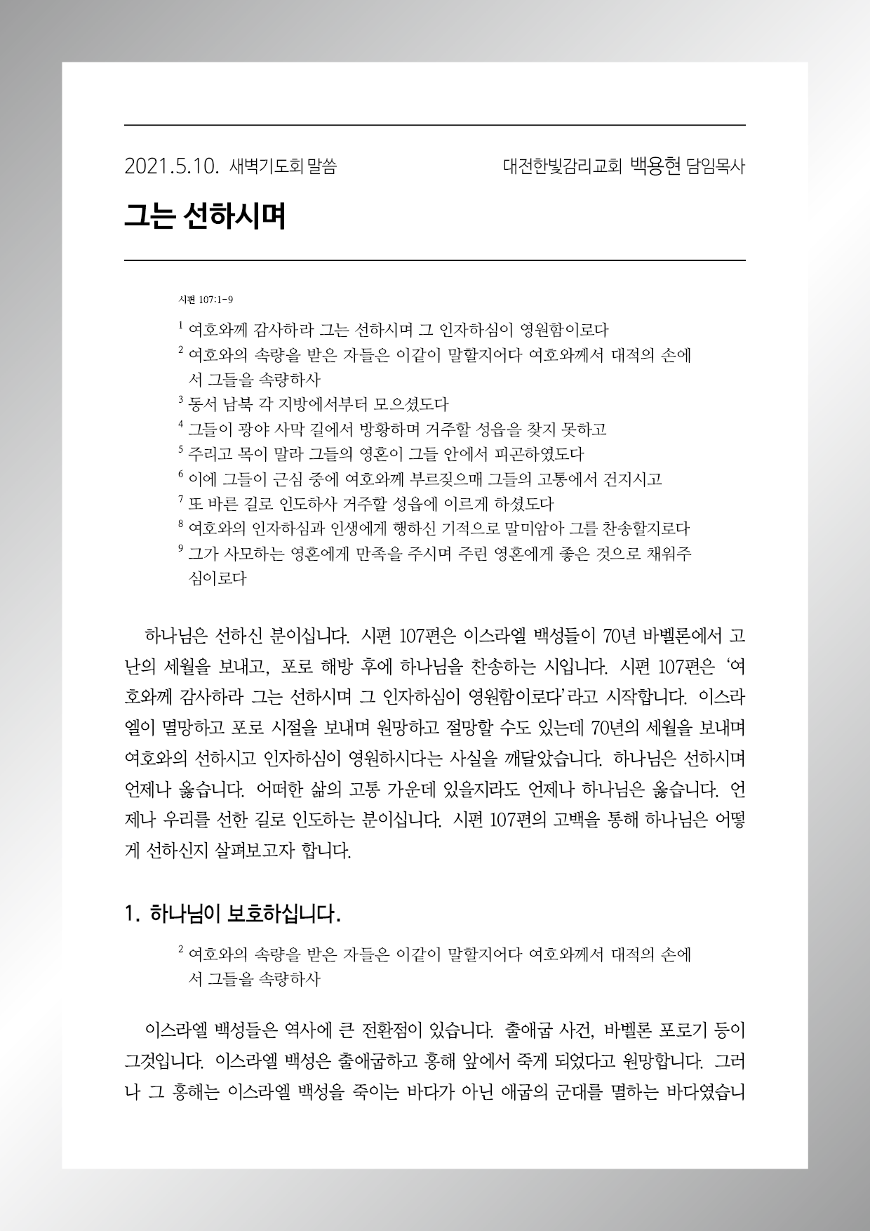 그는 선하시며