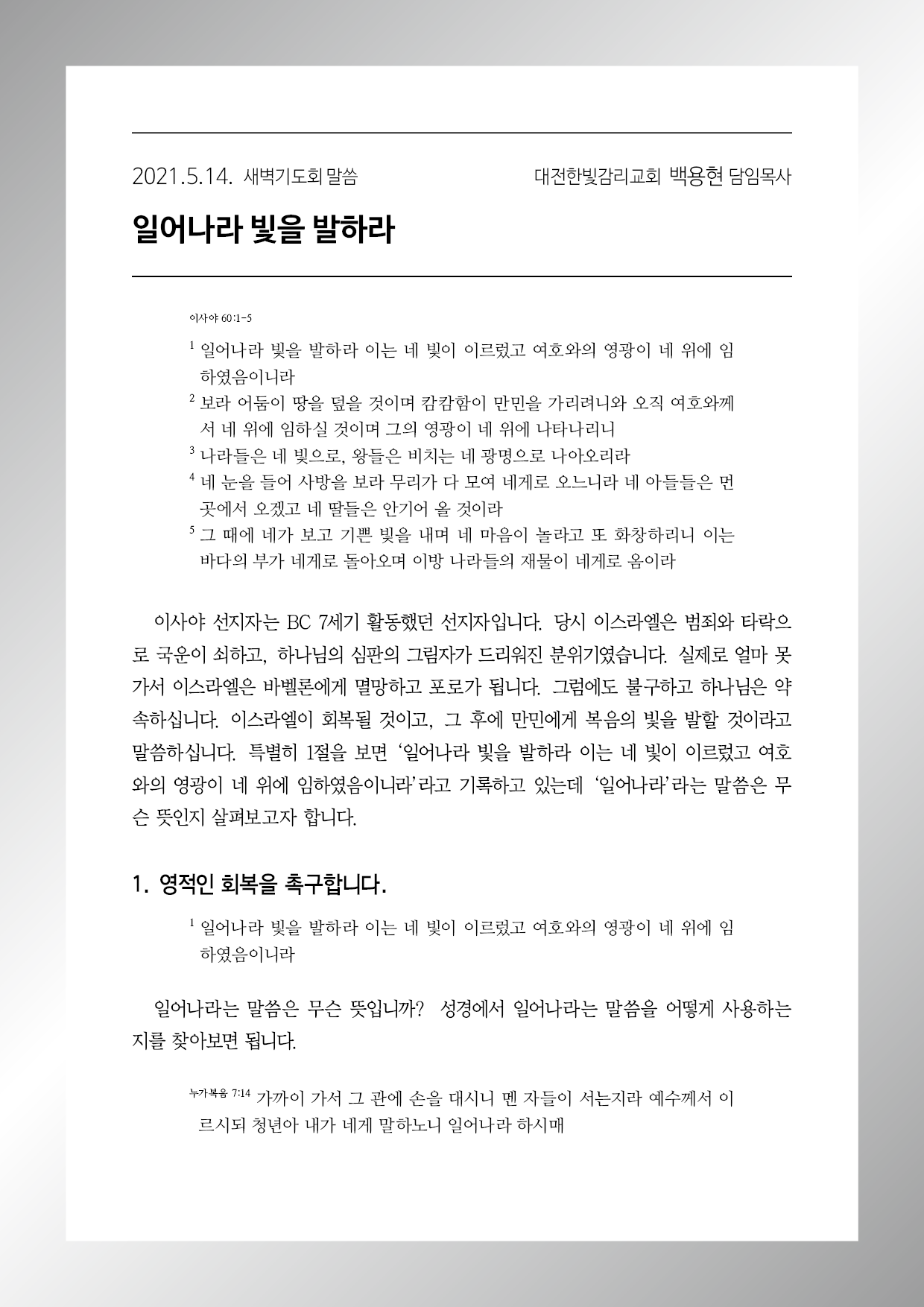 이사야 60장 1-5절
