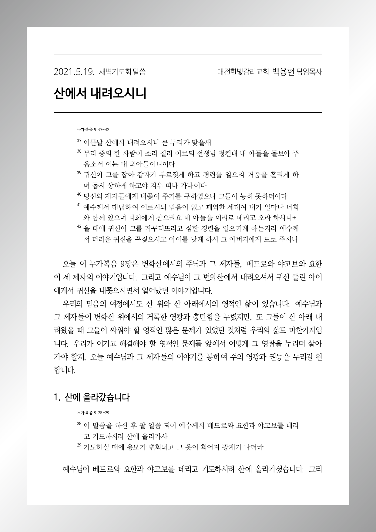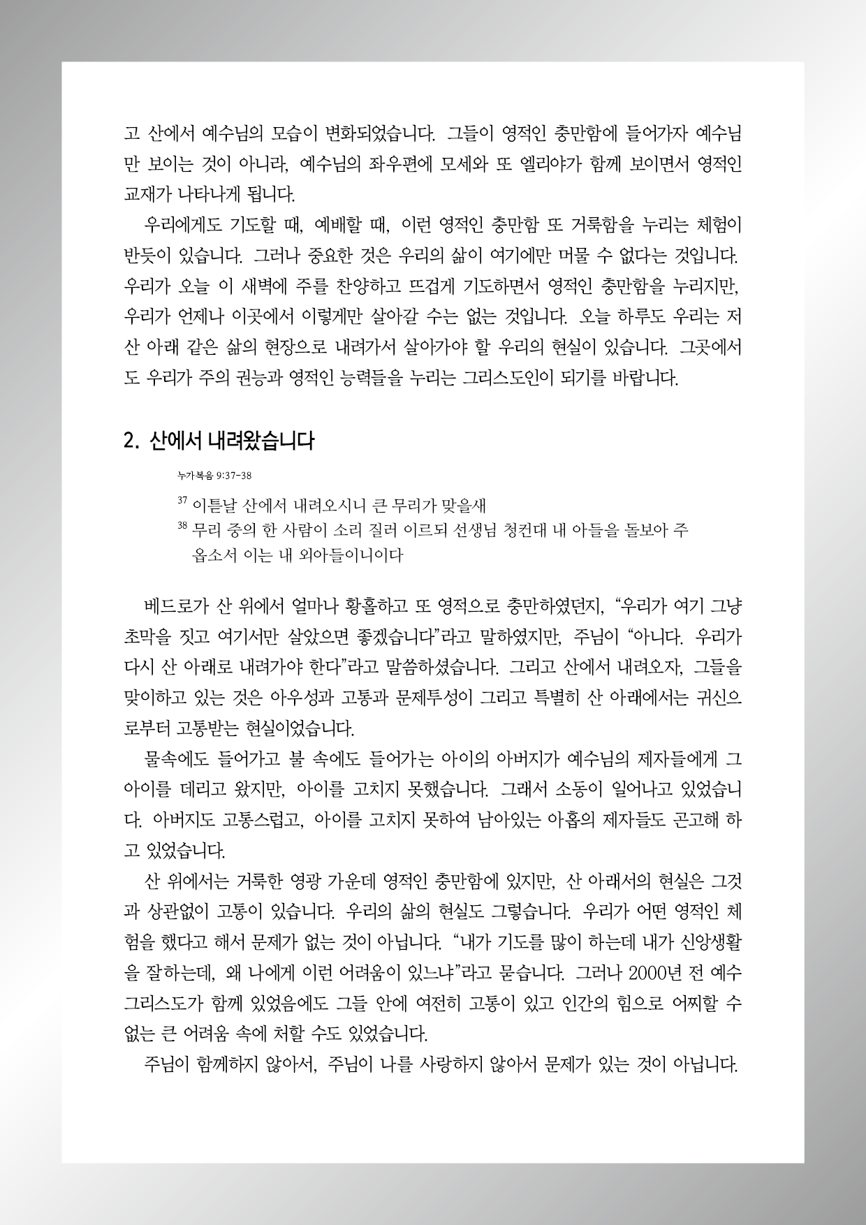 누가복음 9장 37-43절