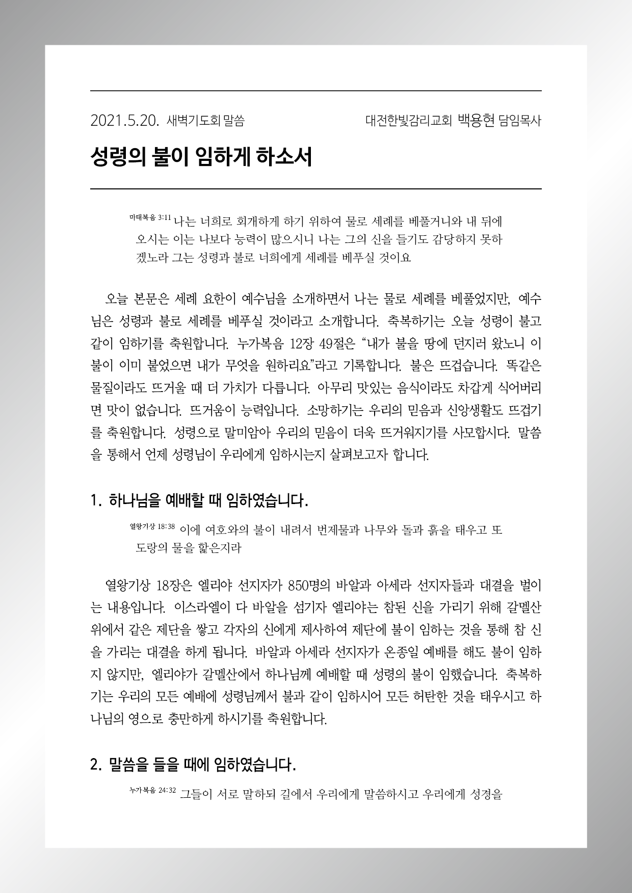 성령의 불이 임하게 하소서