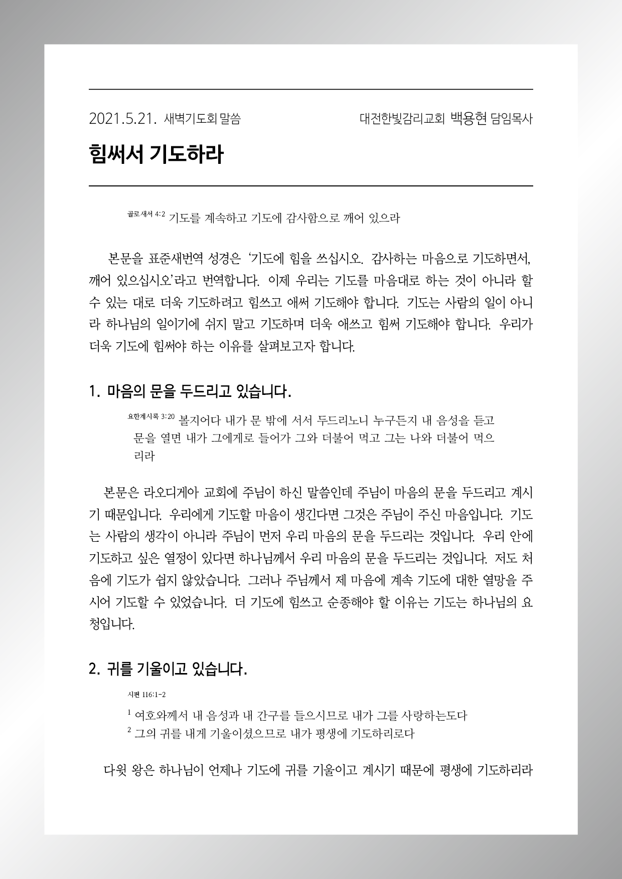 힘써서 기도하라