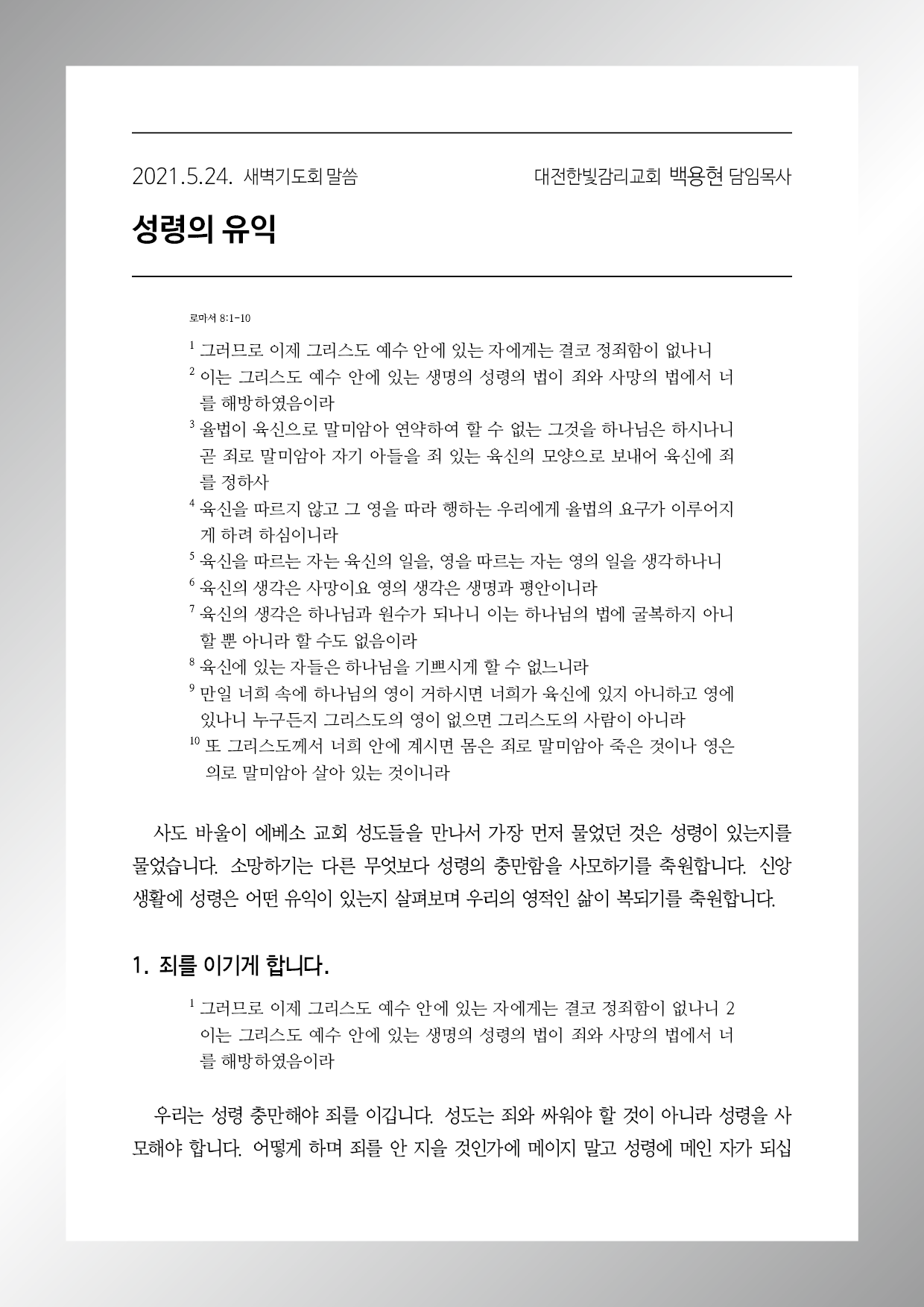 로마서 8장 1-10절