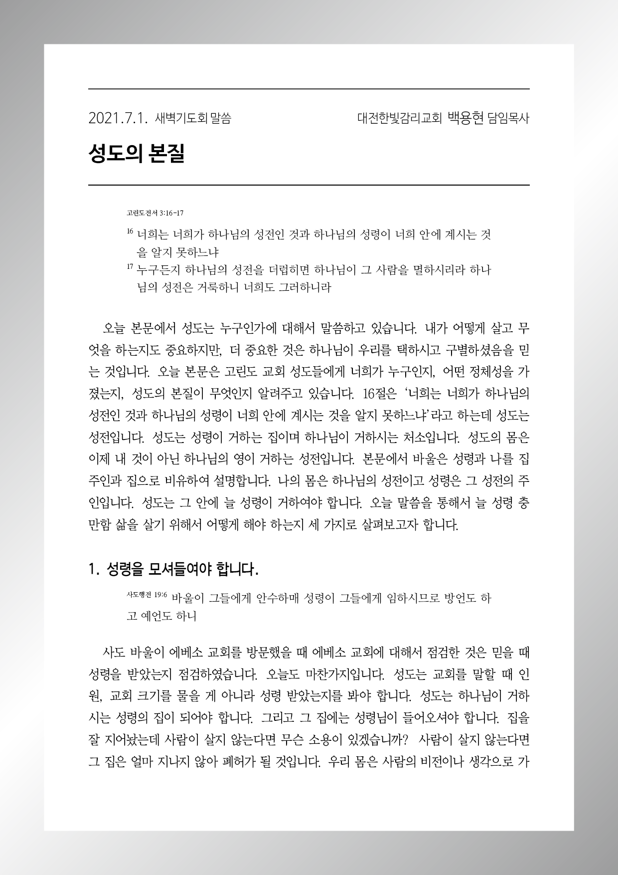 고린도전서 3장 16-17절