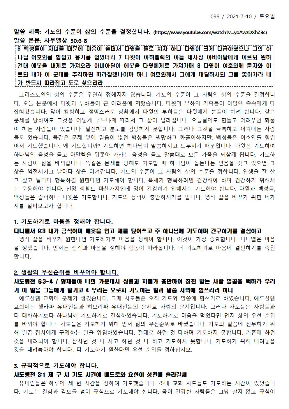 기도의 수준이 삶의 수준을 결정합니다