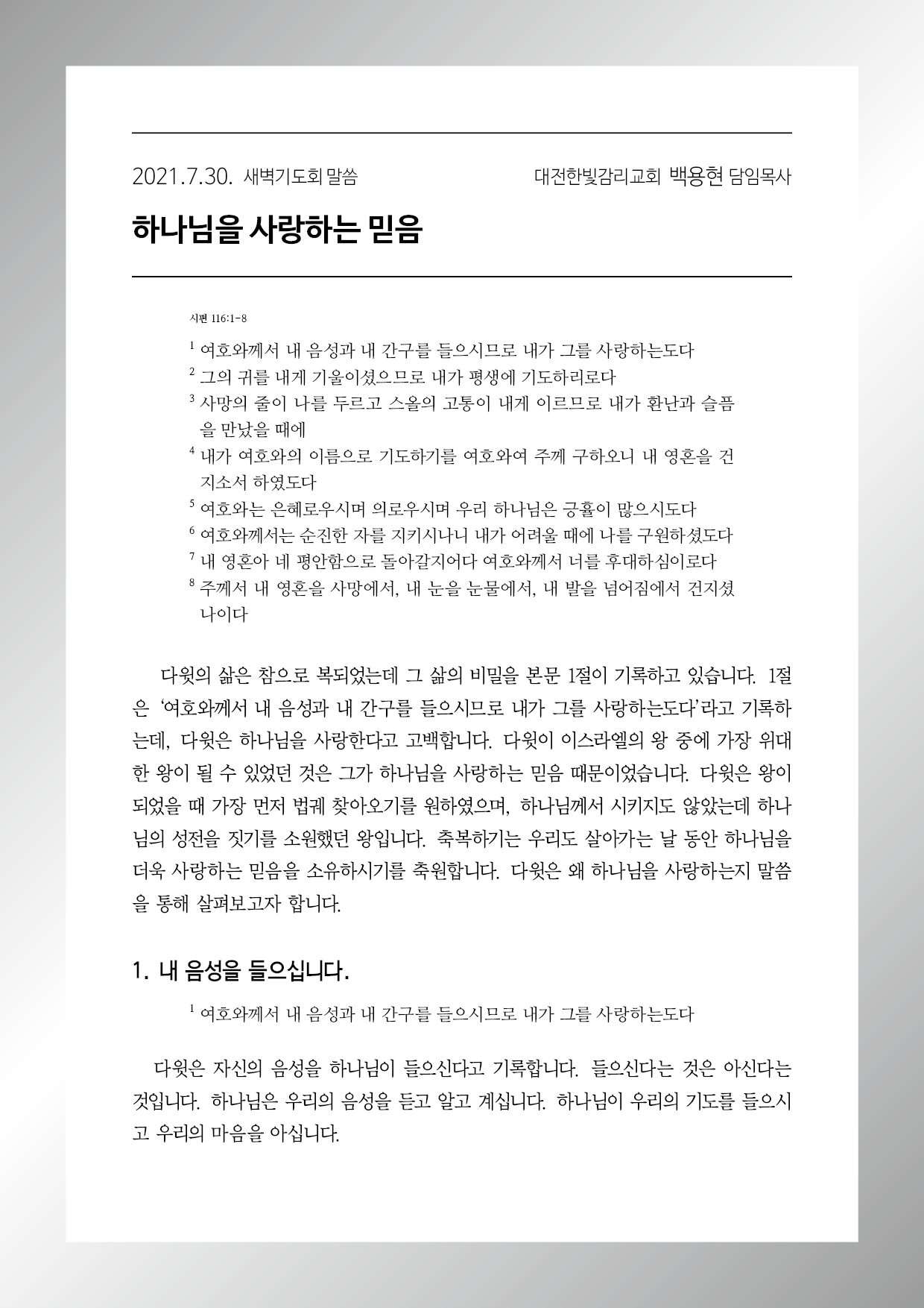 하나님을 사랑하는 믿음