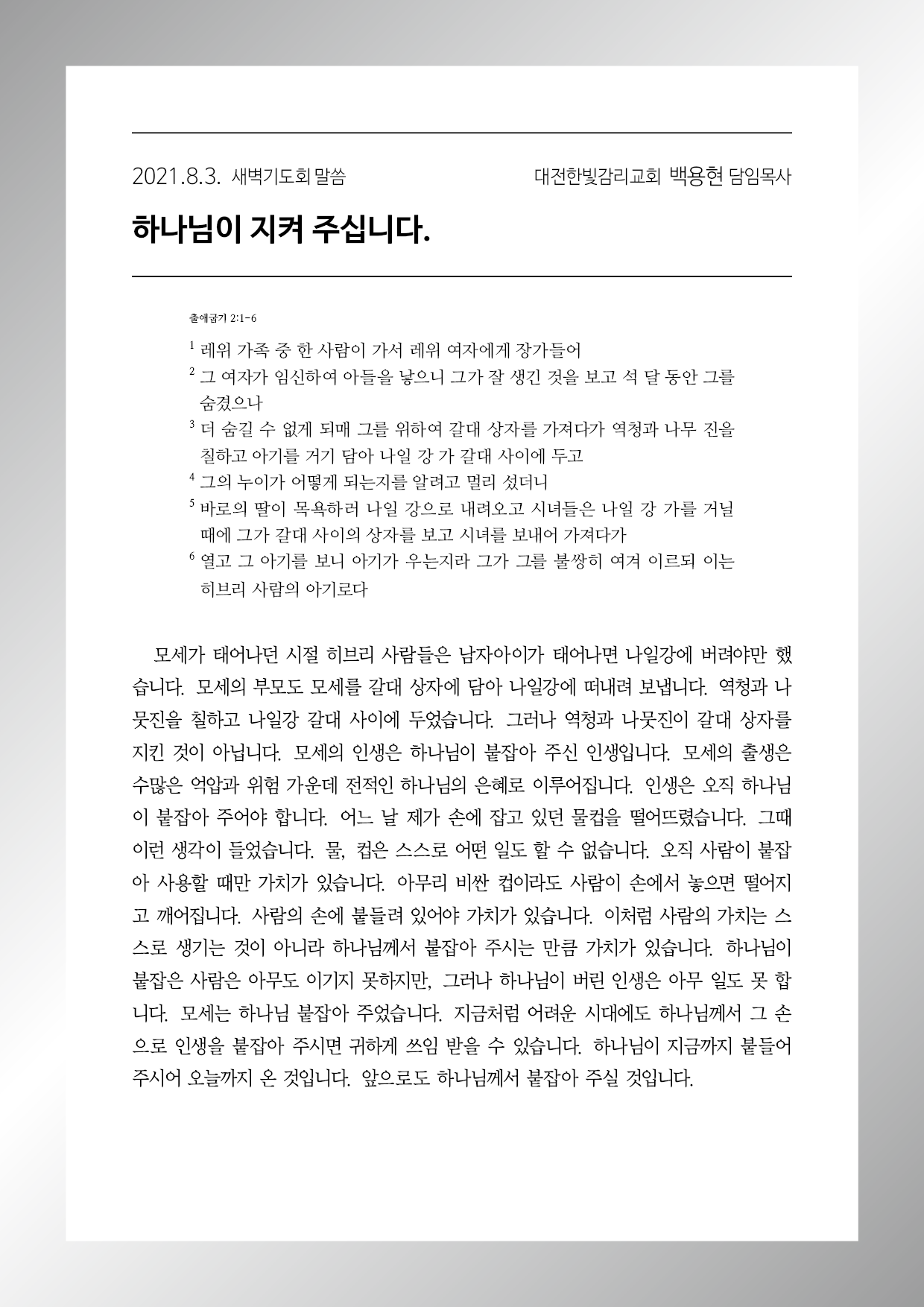 출애굽기 2장 1-6절