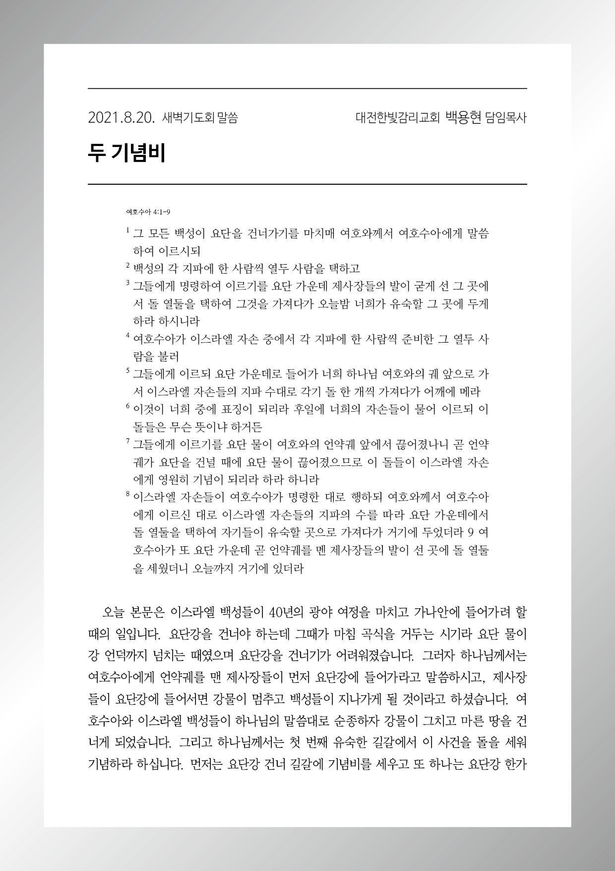여호수아 4장 1-9절