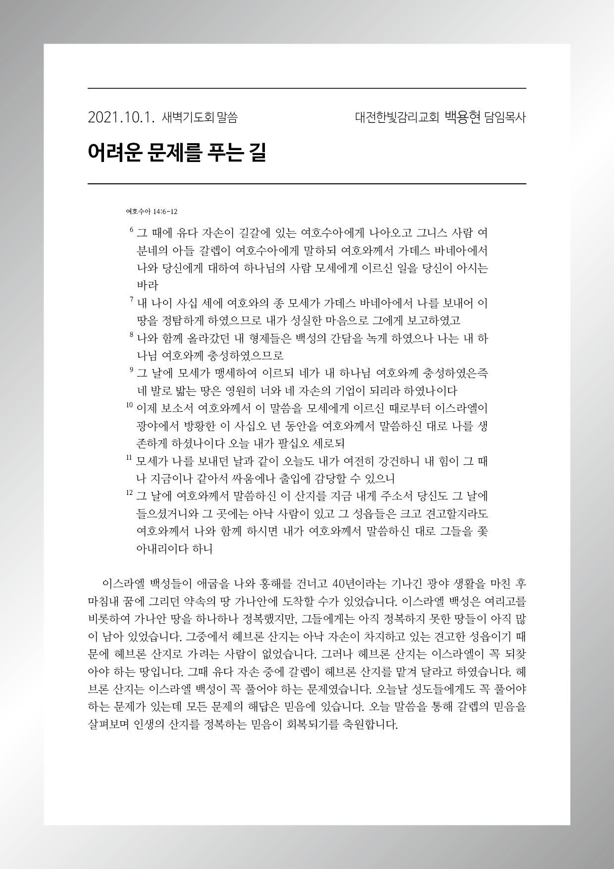 여호수아 14장 6-12절