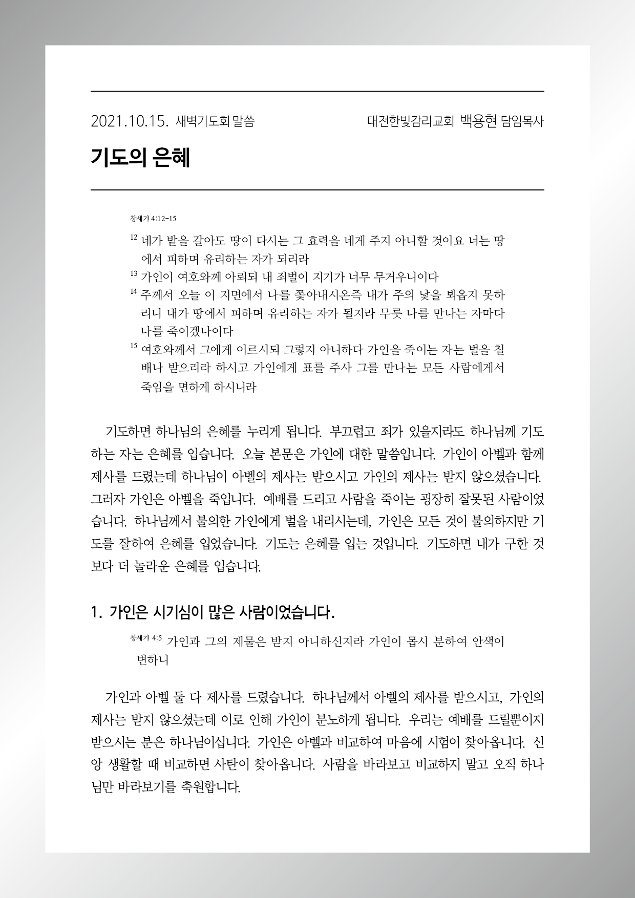 기도의 은혜