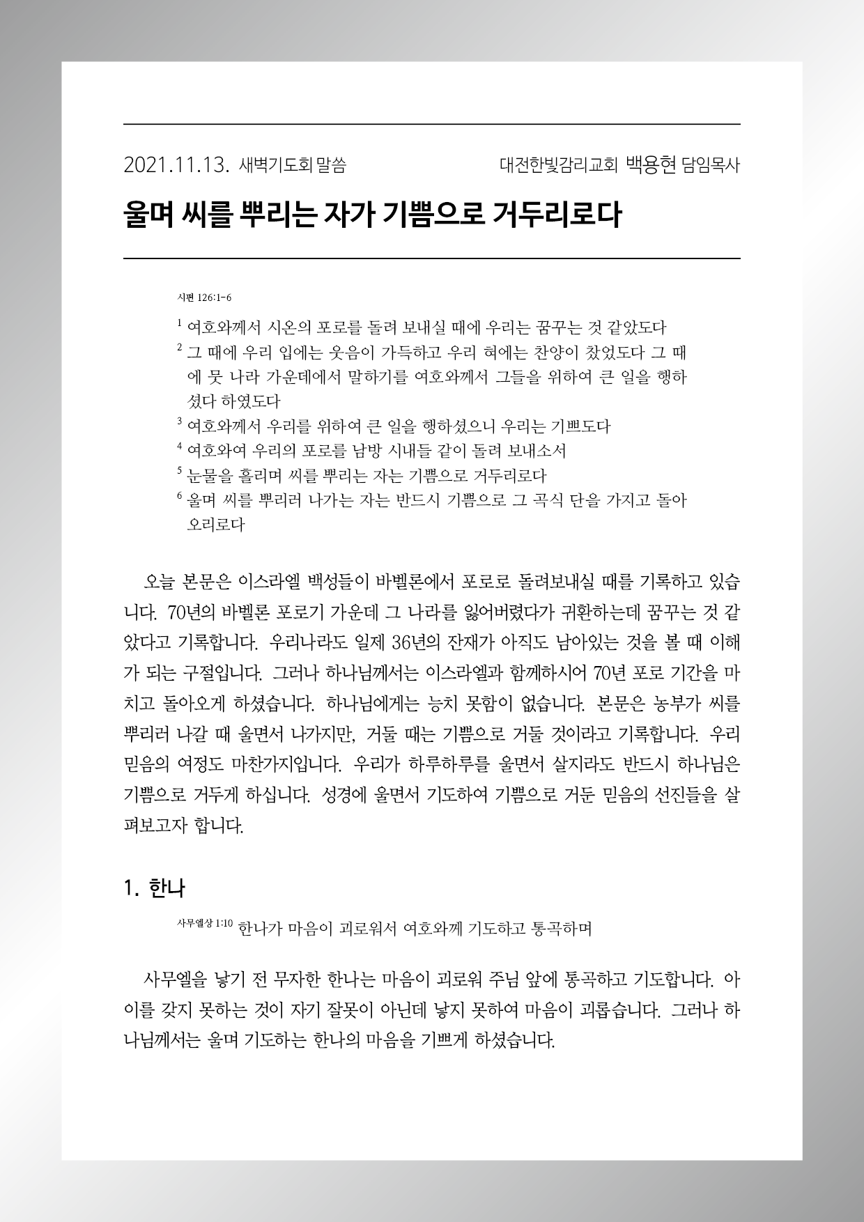 시편 126편 1-6절