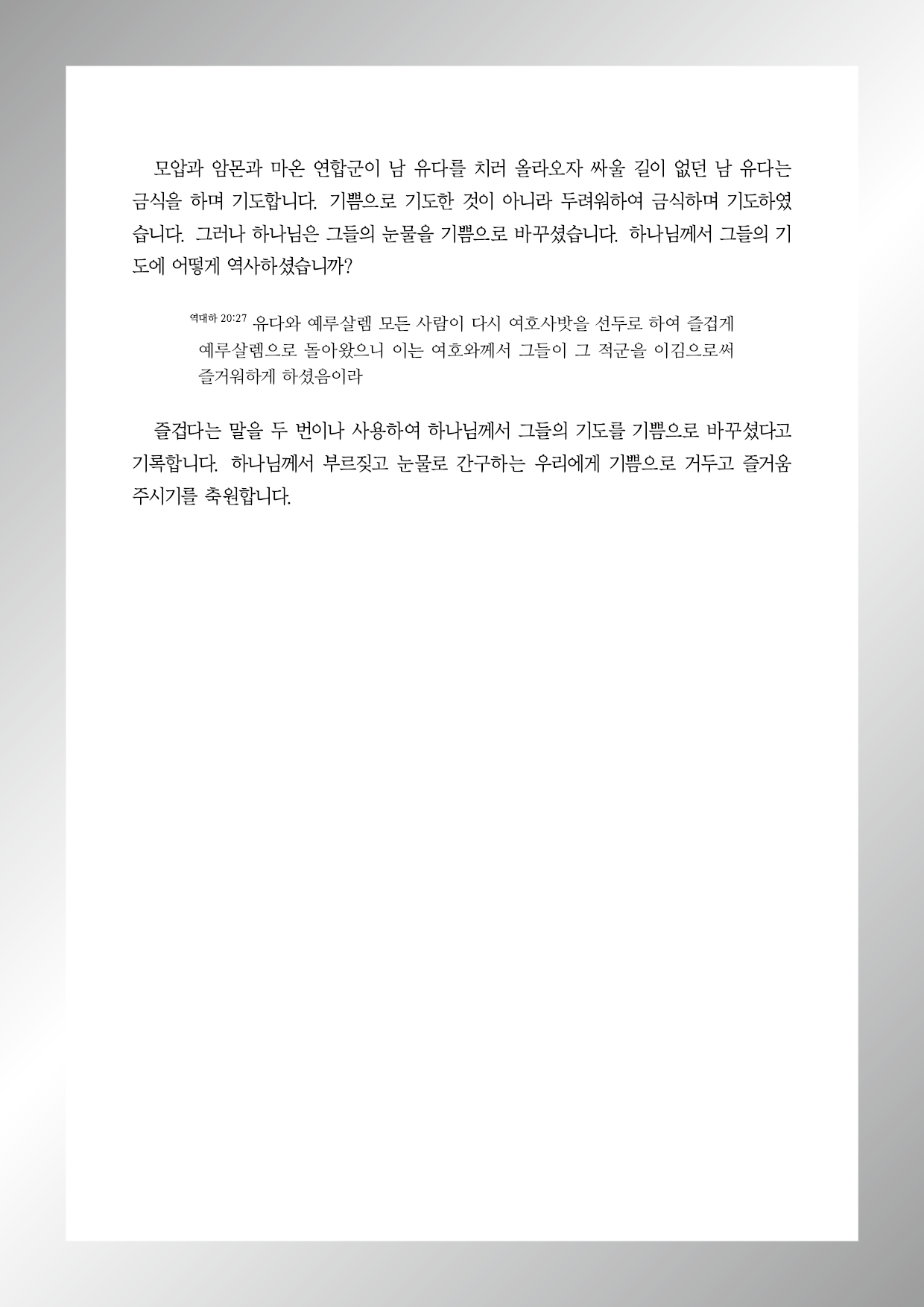 울며 씨를 뿌리는 자가 기쁨으로 거두리로다